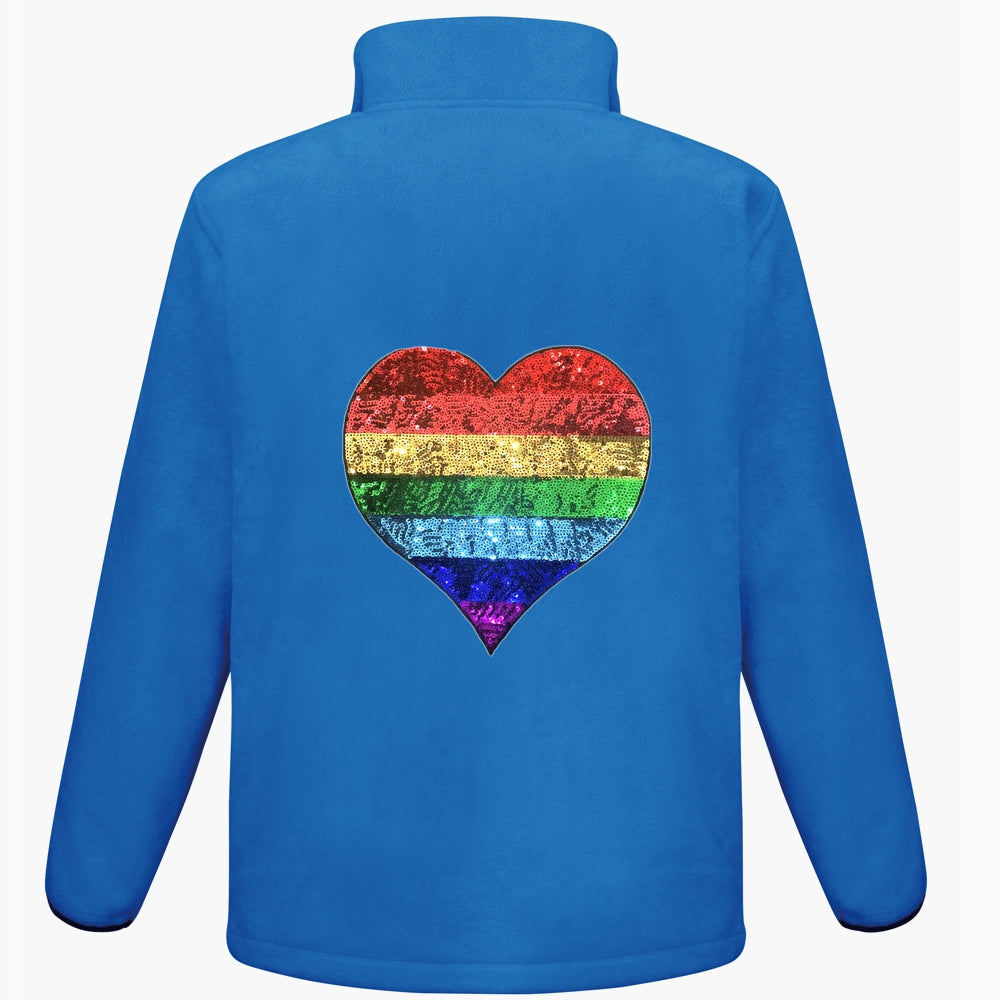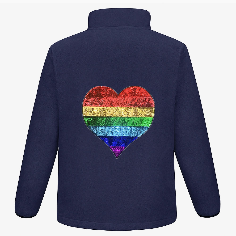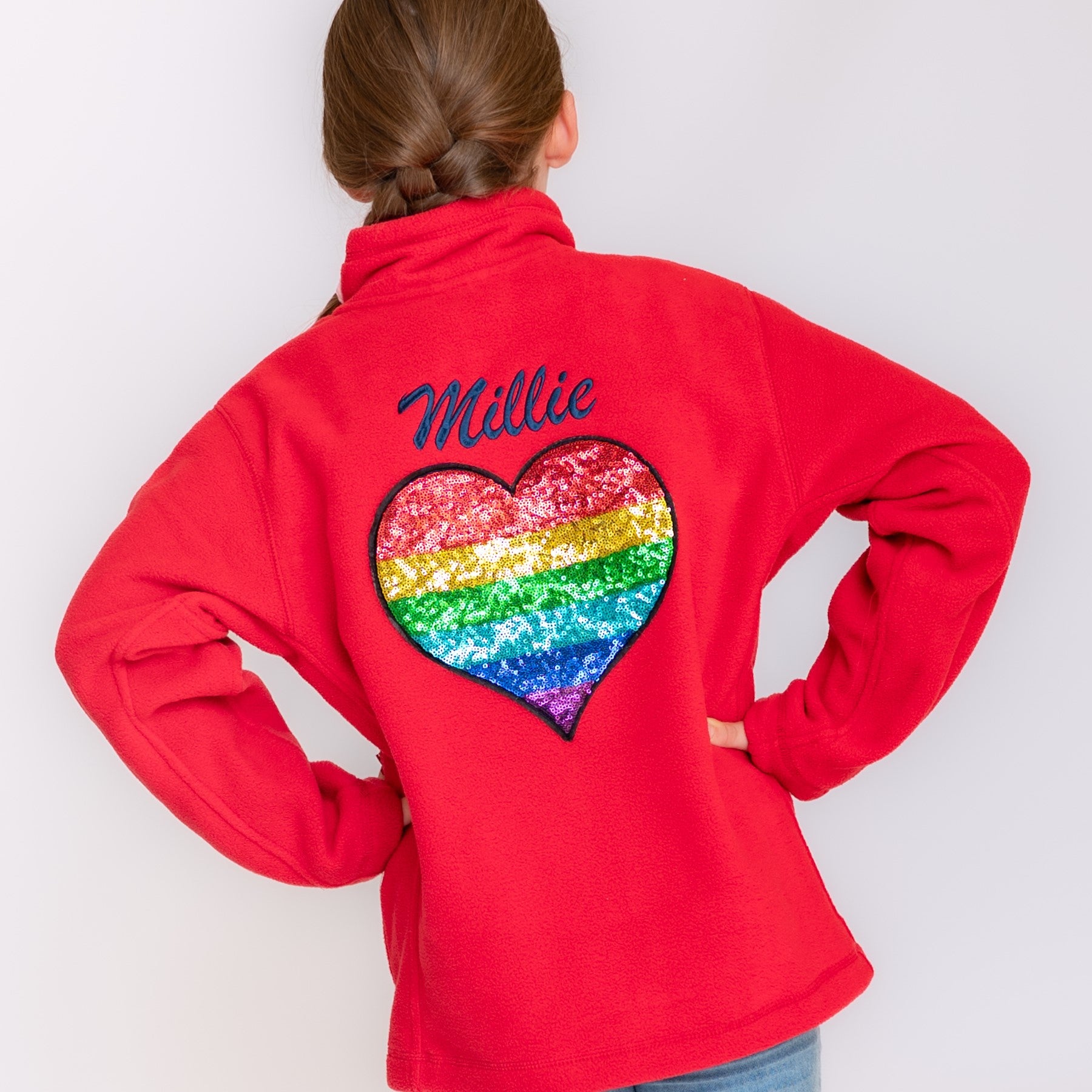 Super warm and cosy fleece customised with a stunning sequin rainbow heart measuring 20cm across.