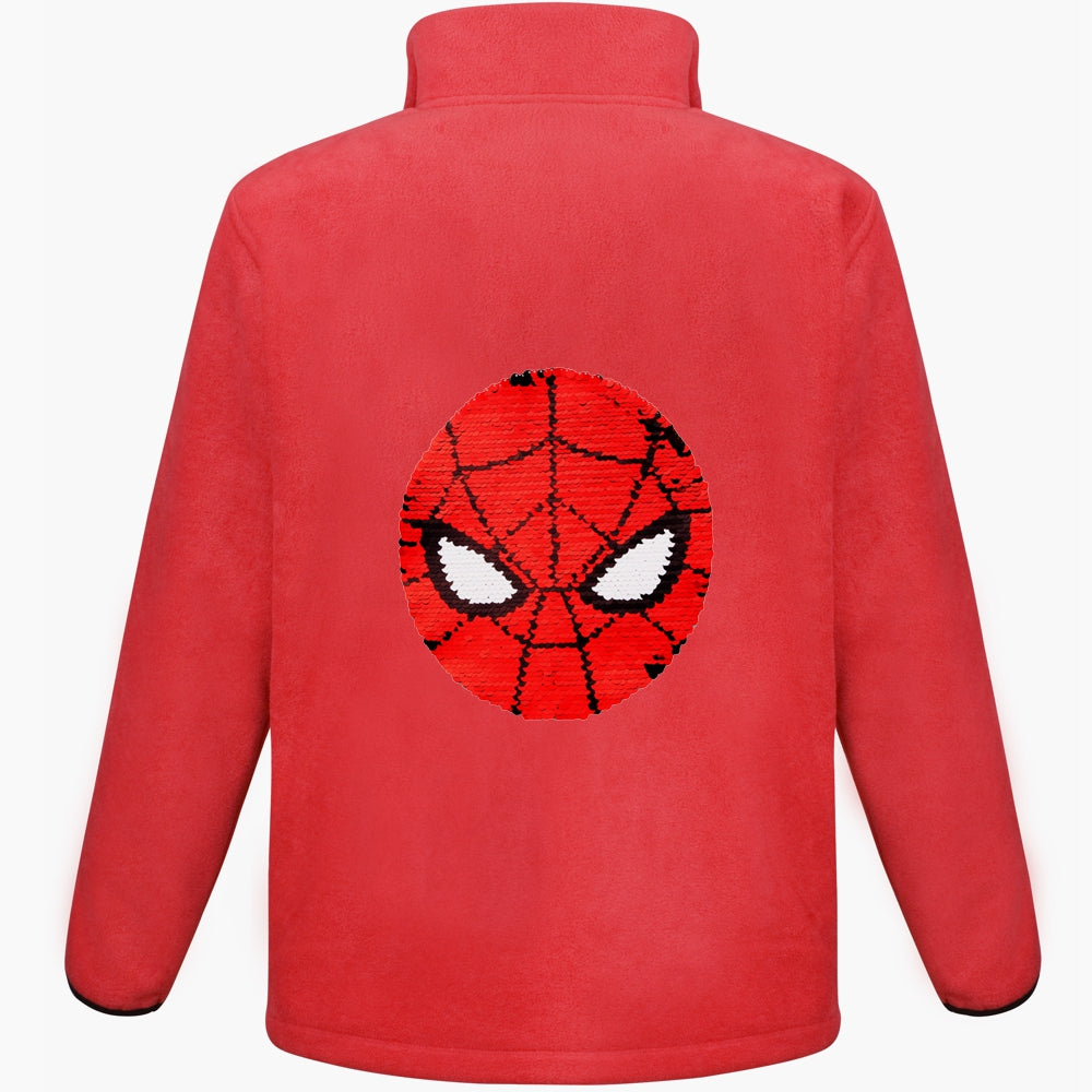 Super warm and cosy fleece customised with a stunning spiderman-esque head with reversible sequins - red one way and blue the other. The head measures approx 20cm across and 23cm in height.
