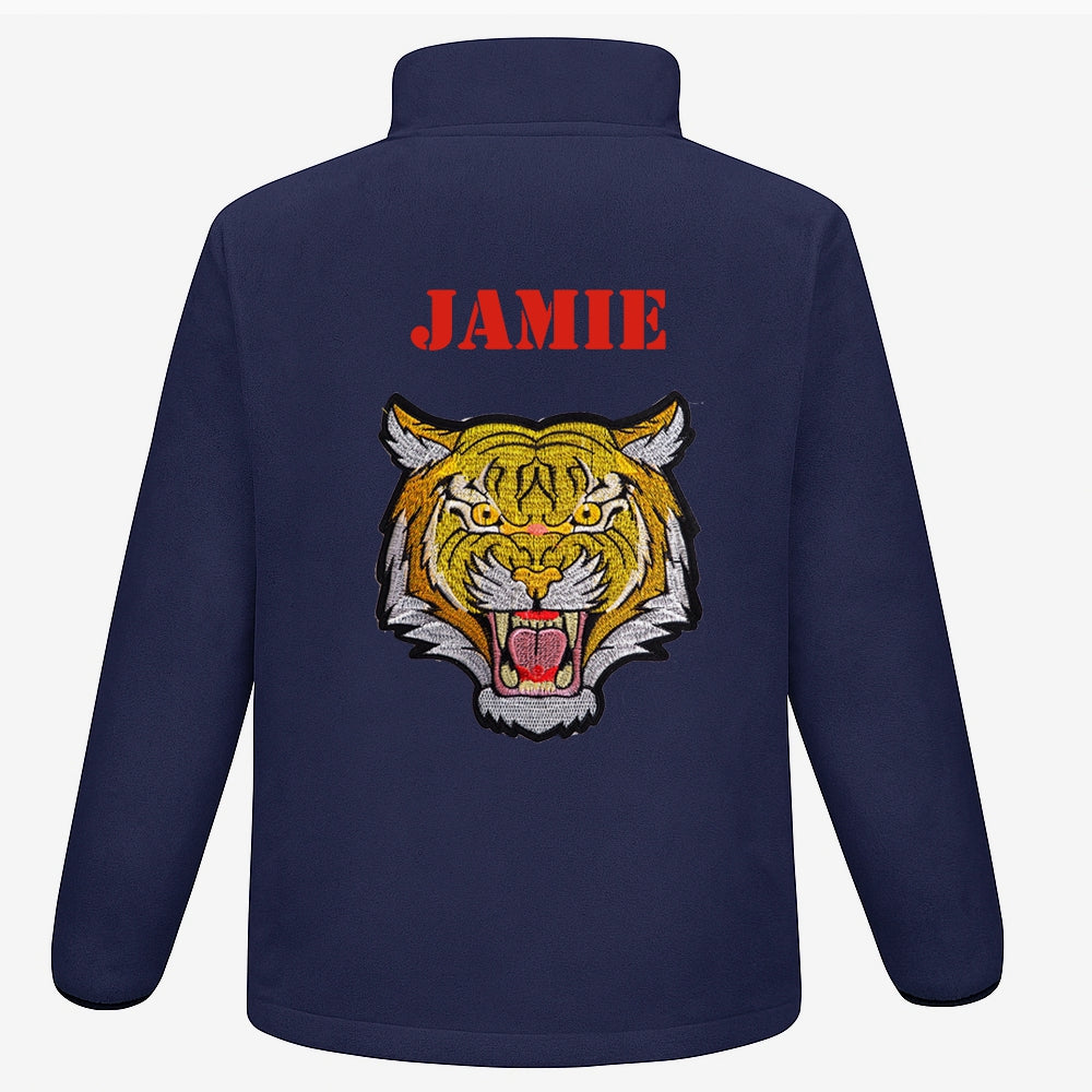 Super warm and cosy fleece customised with a roaring tiger's head measuring 18cm across.
