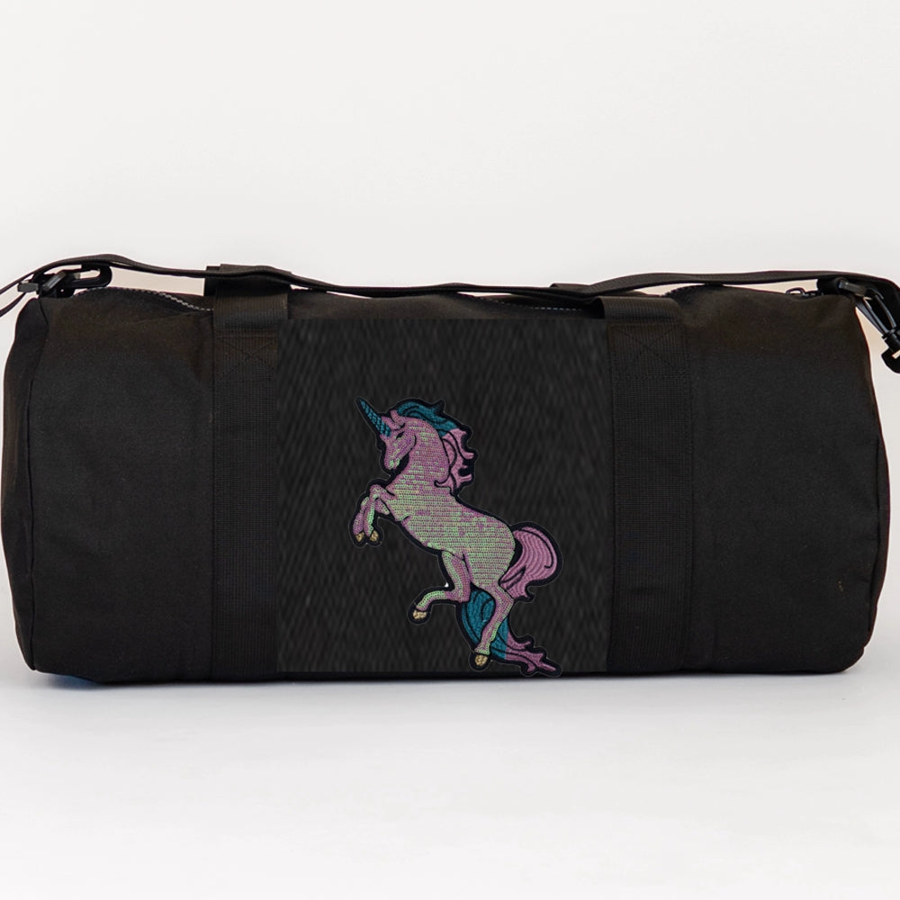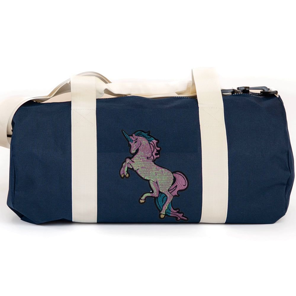 Each bag is customised to order with a pearly pink sequin unicorn, and the option to personalise by adding an embroidered name or initials. Choose your font and thread colour to create a totally personalised bag!