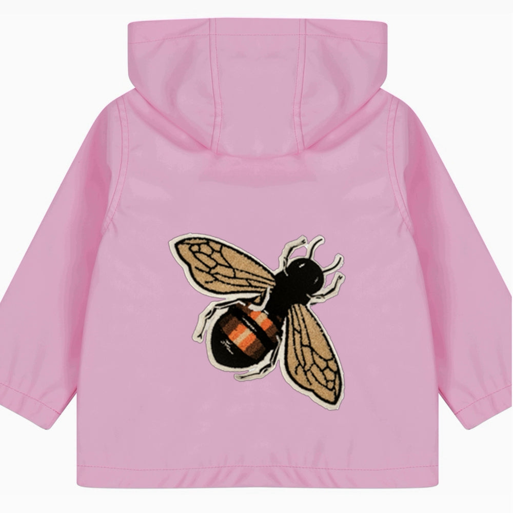 Bright, practical and made to last – this waterproof rain jacket keeps little explorers dry and happy, whatever the weather. Each one is customised to order with a fluffy chenille bee.