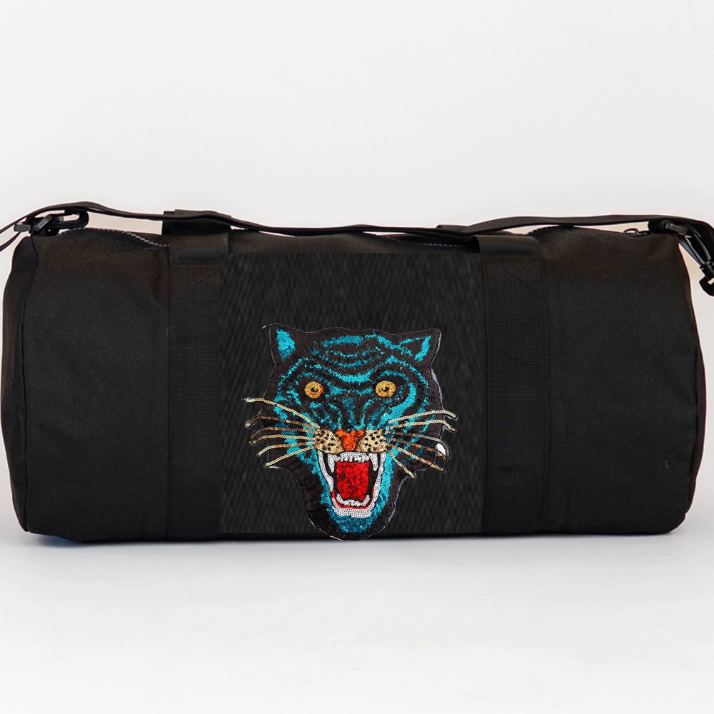 Each bag is customised to order with a sparkly blue sequin tiger's head and the option to personalise by adding an embroidered name or initials. Choose your font and thread colour to create a totally personalised bag!