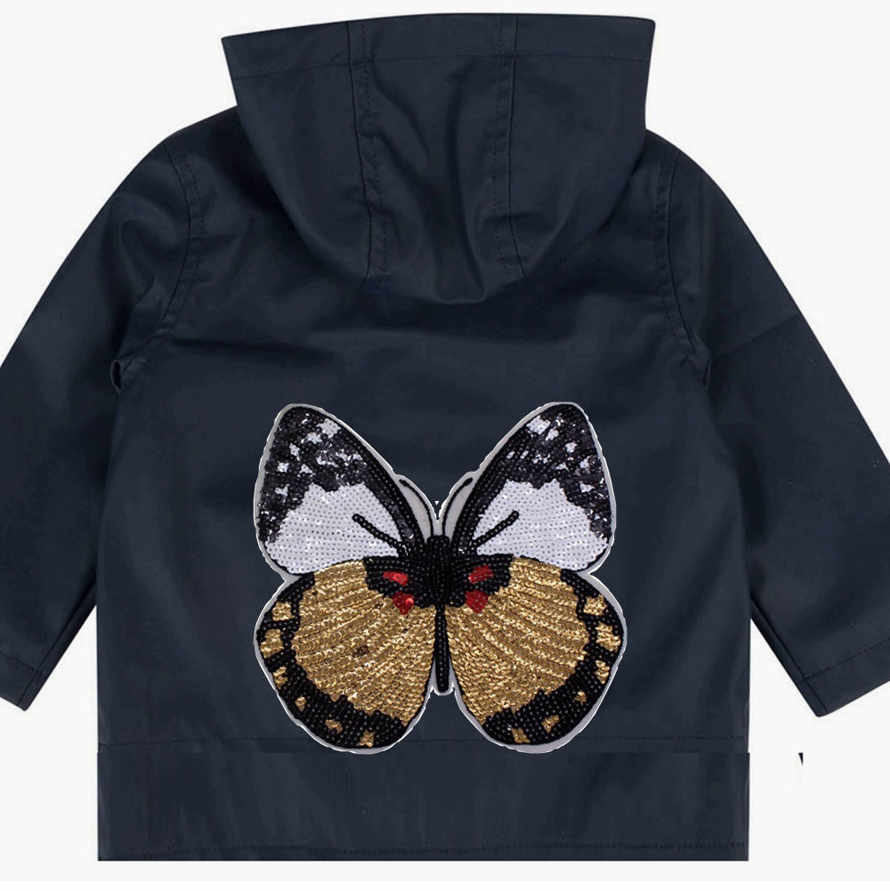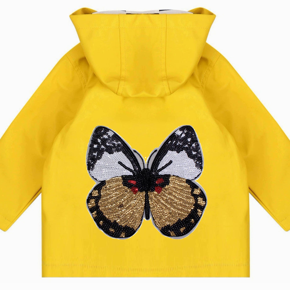 Bright, practical and made to last – this waterproof rain jacket keeps little explorers dry and happy, whatever the weather. Each one is customised to order with a sparkly sequin butterfly and the option to personalise by adding an embroidered name or initals. Choose your font and thread colour to create a totally personalised rain jacket!
