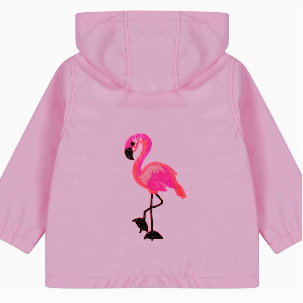 Bright, practical and made to last – this waterproof rain jacket keeps little explorers dry and happy, whatever the weather. Each one is customised to order with a funky neon-pink sequin flamingo,measuring 25cm in height.